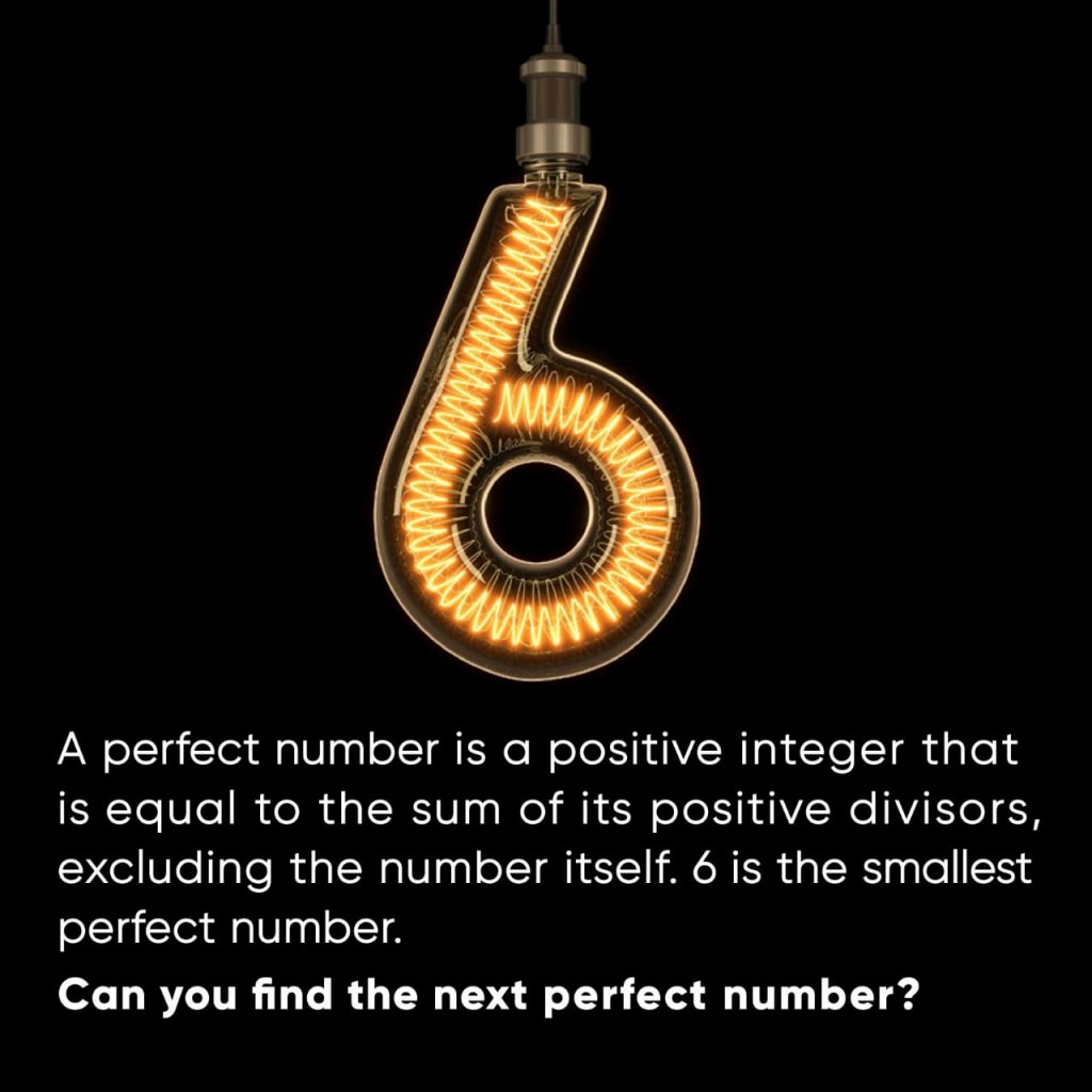 Just to reiterate – in number theory, a perfect number is a positive integer that is equal to the sum of its positive divisors, excluding the number itself.